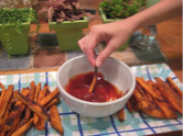 I get so excited when Caroline is home for the weekend! We all decided to have an afternoon of porch knitting, my favorite activity, which definitely had to involve a delicious snack. It didn’t take us long to decide on Sweet Potato Fries with our own doctored up ketchup right from the cookbook.